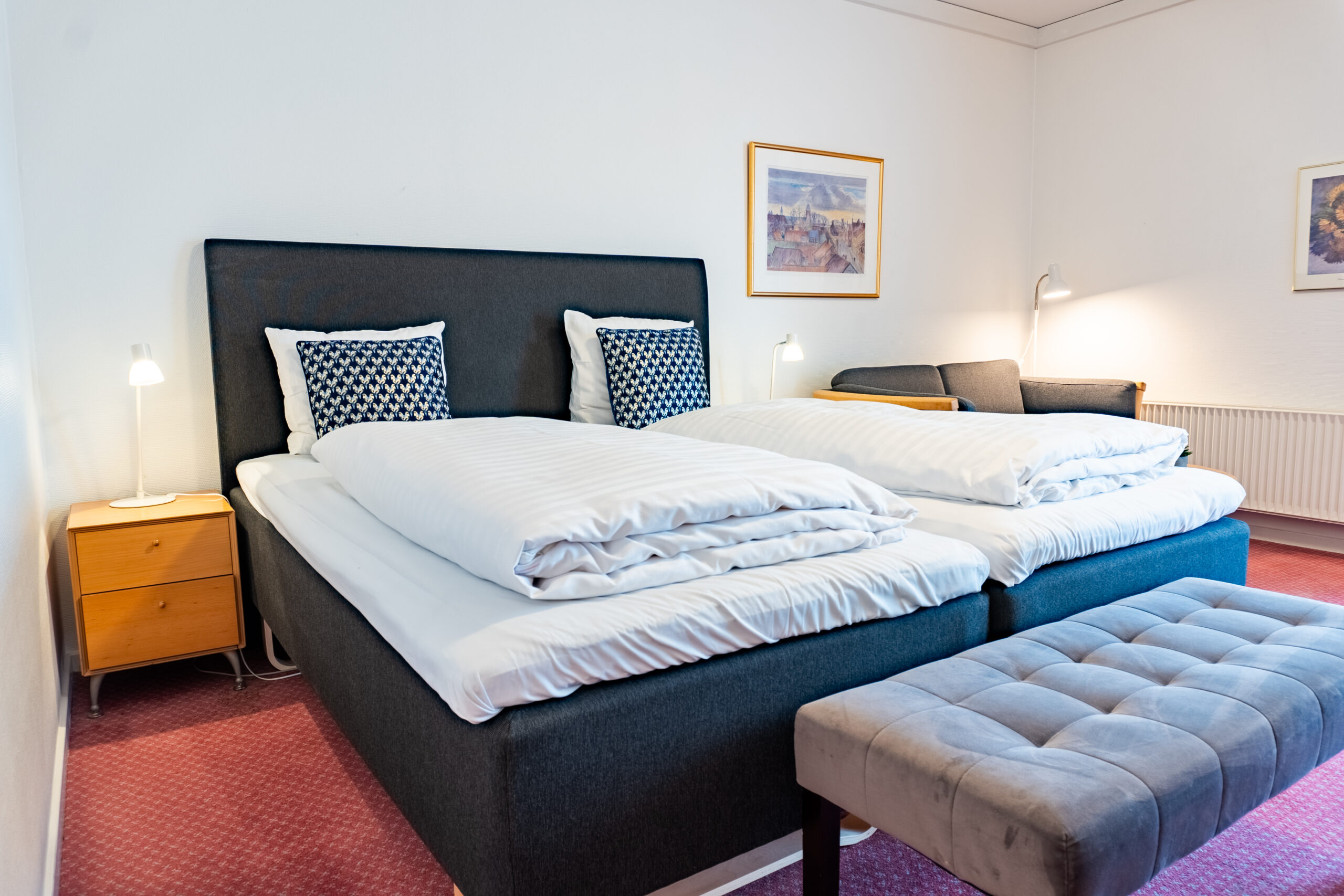 Når du booker et af vores superior-værelser, er morgenmad inkluderet i dit ophold – Dette gælder dog kun, hvis bookingen foretages via vores hjemmeside. Vores morgenmadsbuffet byder på en bred vifte af frisklavede, skandinaviske delikatesser. Du kan se frem til at nyde alt fra æg og brunchpølser af ekstra høj kvalitet til et udvalg af brødtyper, pålæg, oste, yoghurt med hjemmelavet kompot og friskpresset juice. Derudover tilbyder vi også et sortiment af gluten- og laktosefrie retter for at sikre, at alle vores gæster kan starte deres dag på den bedste måde.