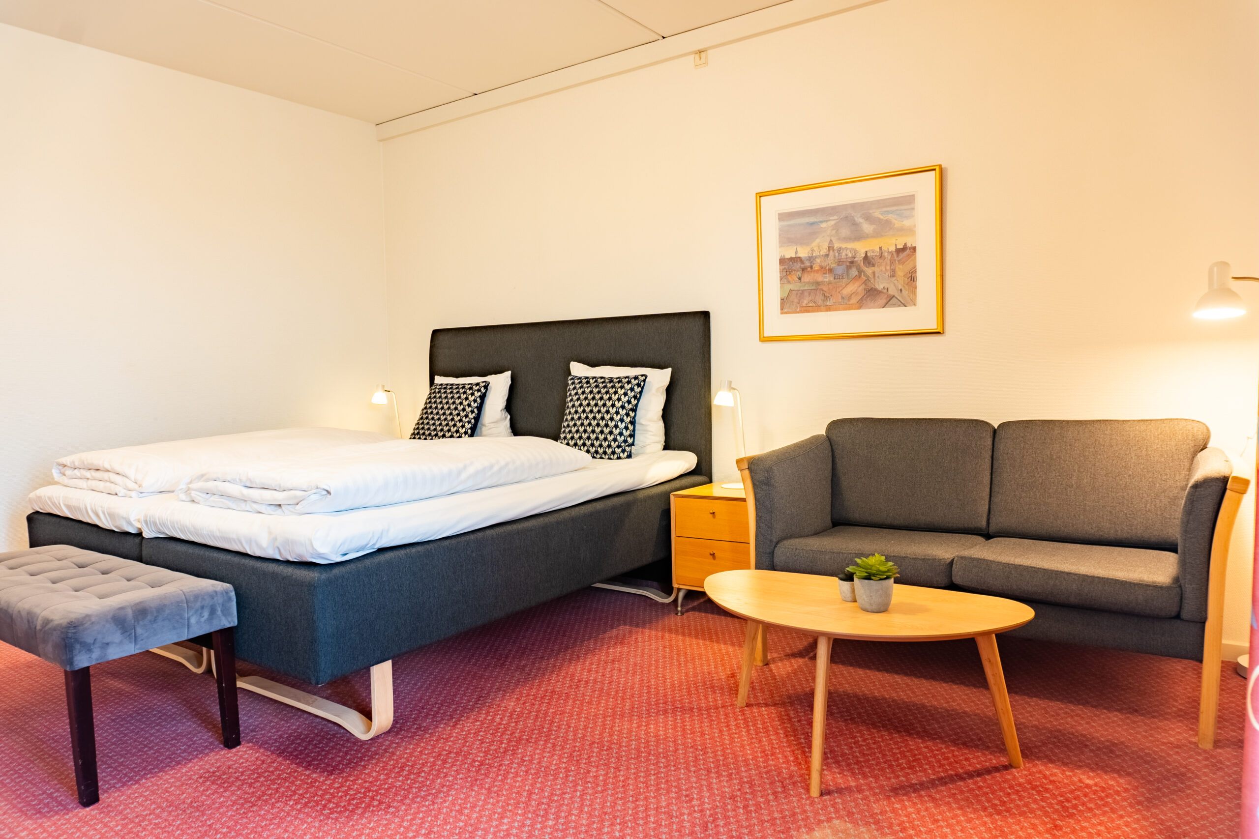 Desuden har vi taget højde for gæster med særlige behov, idet nogle af vores superior værelser er designet til at være handicapvenlige. Disse værelser tilbyder nem adgang via elevator, ekstra brede døre til toilettet og tilstrækkelig plads til at manøvrere på badeværelset, hvilket sikrer, at alle vores gæster kan have et komfortabelt og bekymringsfrit ophold.
